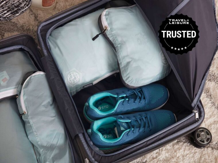 Next, stack the shoes in the shoe bag, with the soles facing each other to minimize wrinkles. To further protect your shoes, place them in the center of your suitcase, surrounded by soft clothing. Finally, use a packing cube or compression bag to keep everything secure and save space.